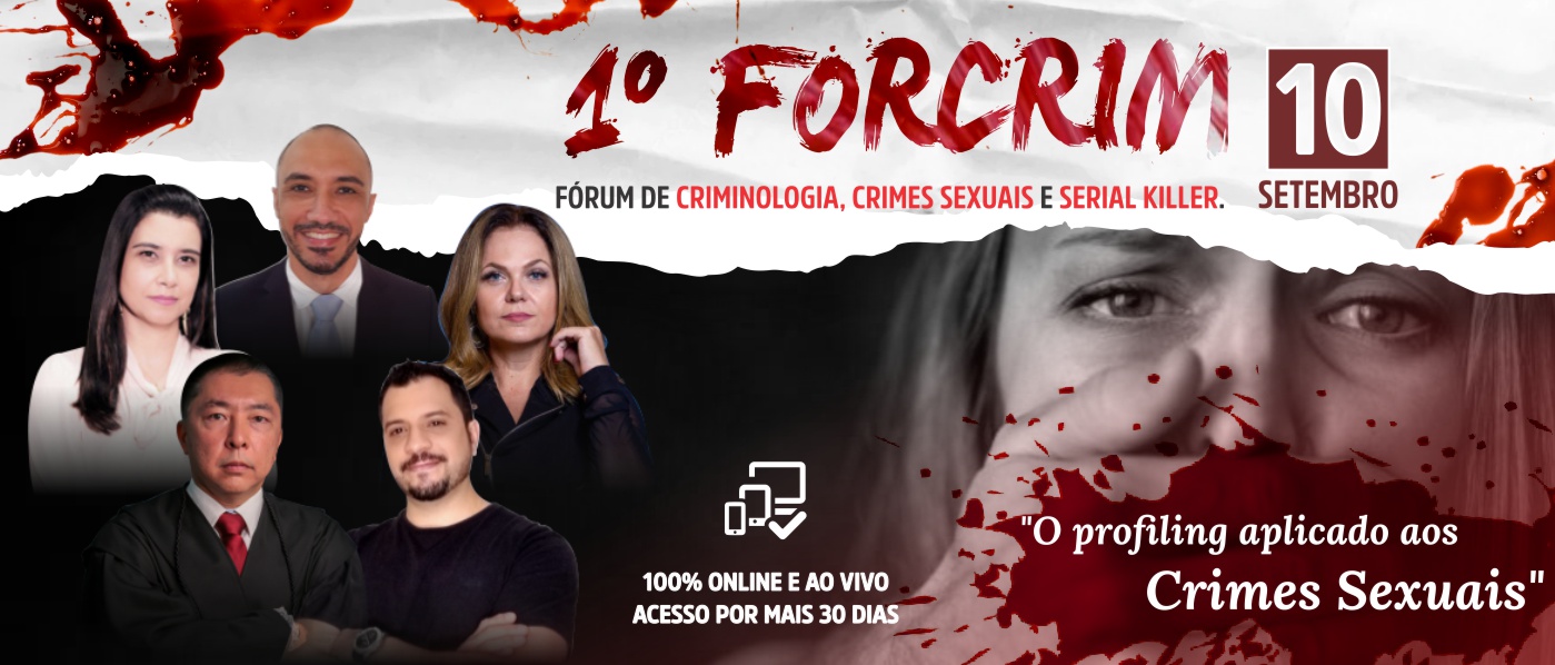 1° FORCRIM- FÓRUM DE CRIMINOLOGIA, CRIMES SEXUAIS E SERIAL KILLER- promovido pelo IUEJ - Instituto Unificado de Ensino Jurídico é um evento consagrado na área do Direito e da Psicologia e acontecerá no dia 10 de setembro de 2022 sendo 100% online e ao vivo. O evento contará com a participação de 5 palestrantes de renome nacional que vão discutir sobre o assunto. O Congresso busca promover discussões envolvendo a Psicologia e o Direito em relação ao PROFILLING APLICATIVO AOS CRIMES SEXUAIS. Trata-se de viabilizar um espaço de debate e divulgação técnico- científica junto à comunidade acadêmica, estudantes, discentes, profissionais e áreas afins, fomentando uma reflexão sobre os temas de cada um dentro da temática do Congresso. Nesta edição, pretende-se ampliar ainda mais os diálogos com outras várias áreas do conhecimento em relação ao tema do Congresso com suas características respeitando suas correlações históricas, socioeconômicas, culturais e políticas. Para ter acesso a programação e realizar sua inscrição acesse o site: www.iuej.com.br.